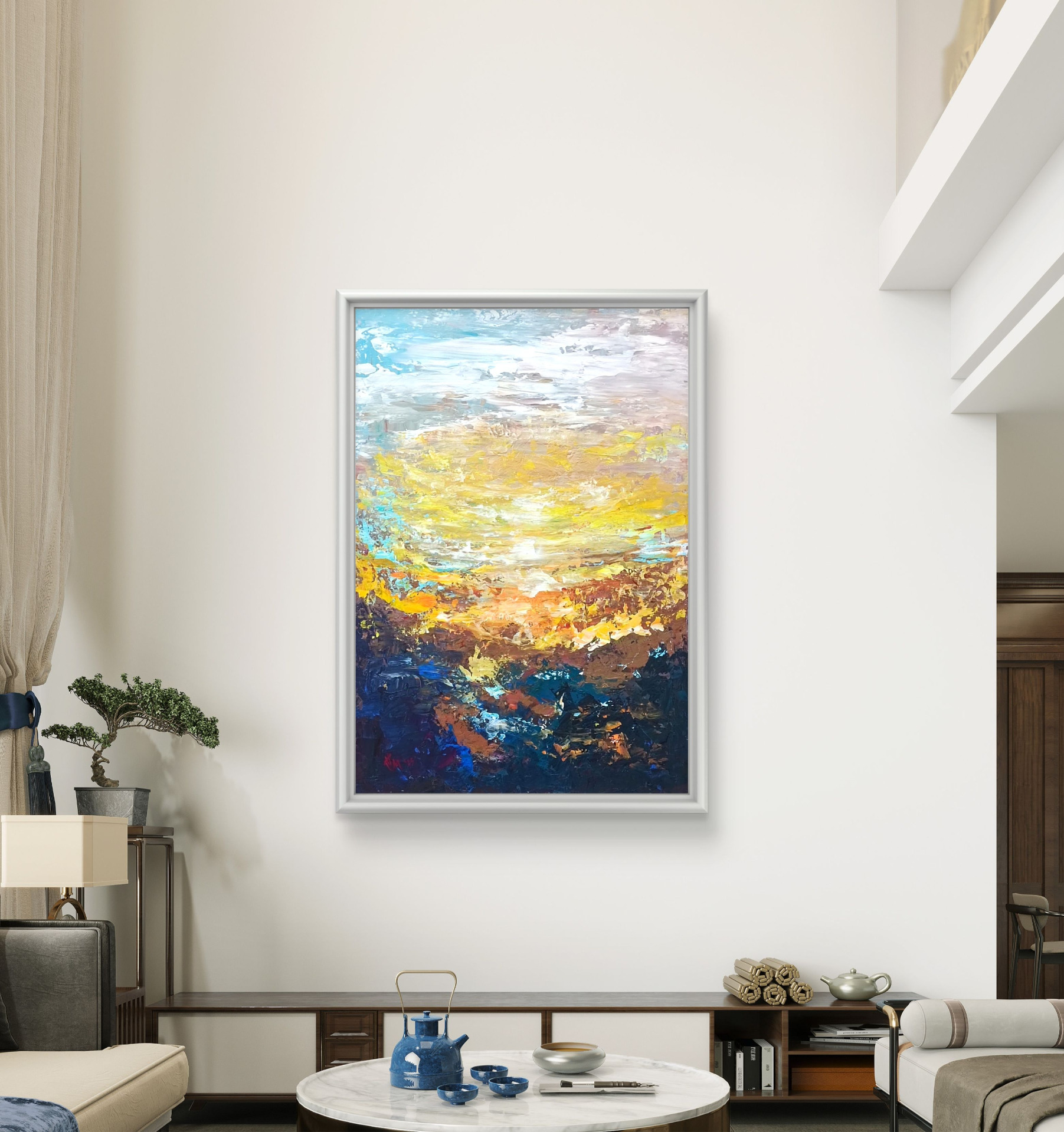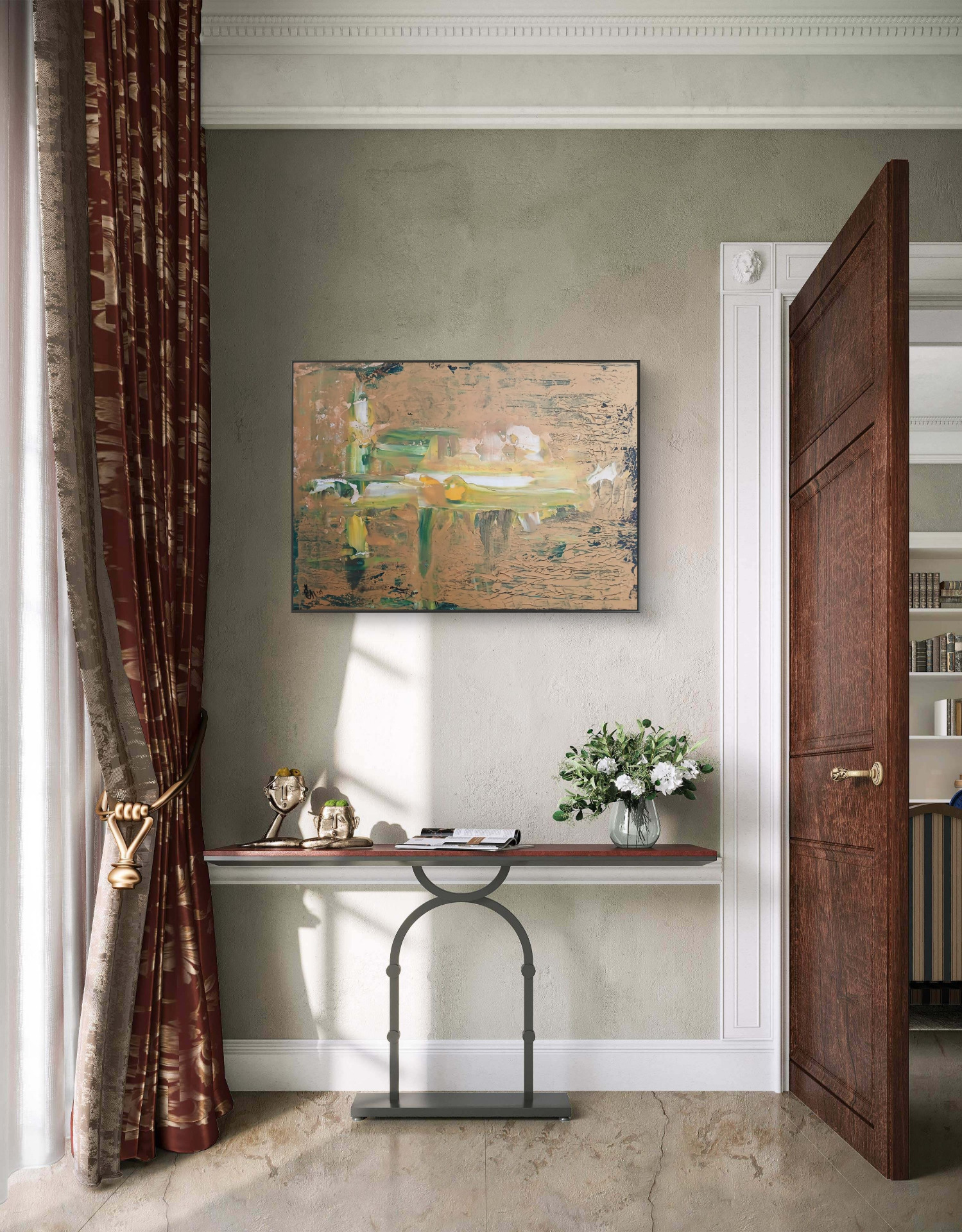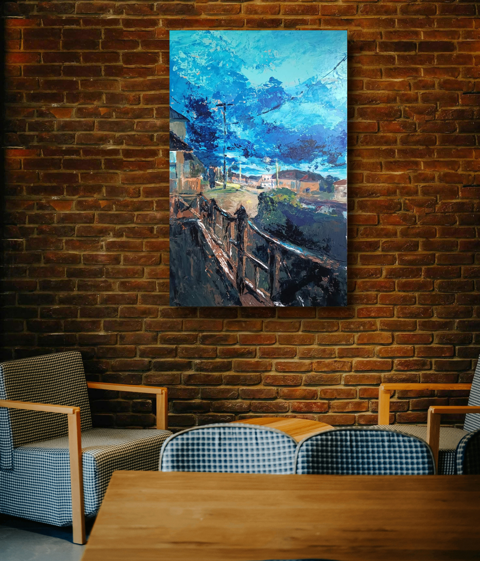 Gyerekkor- Térképtelen világ c. festményemmel a gyerekkor ÖSZTÖNÖS,NYITOTT és HATÁRTALAN létélményét idézem meg. Egy olyan világot,ahol még minden mozdulat felfedezés, minden szín egy érzés lenyomata- szabályok nélkül, SZABADON.