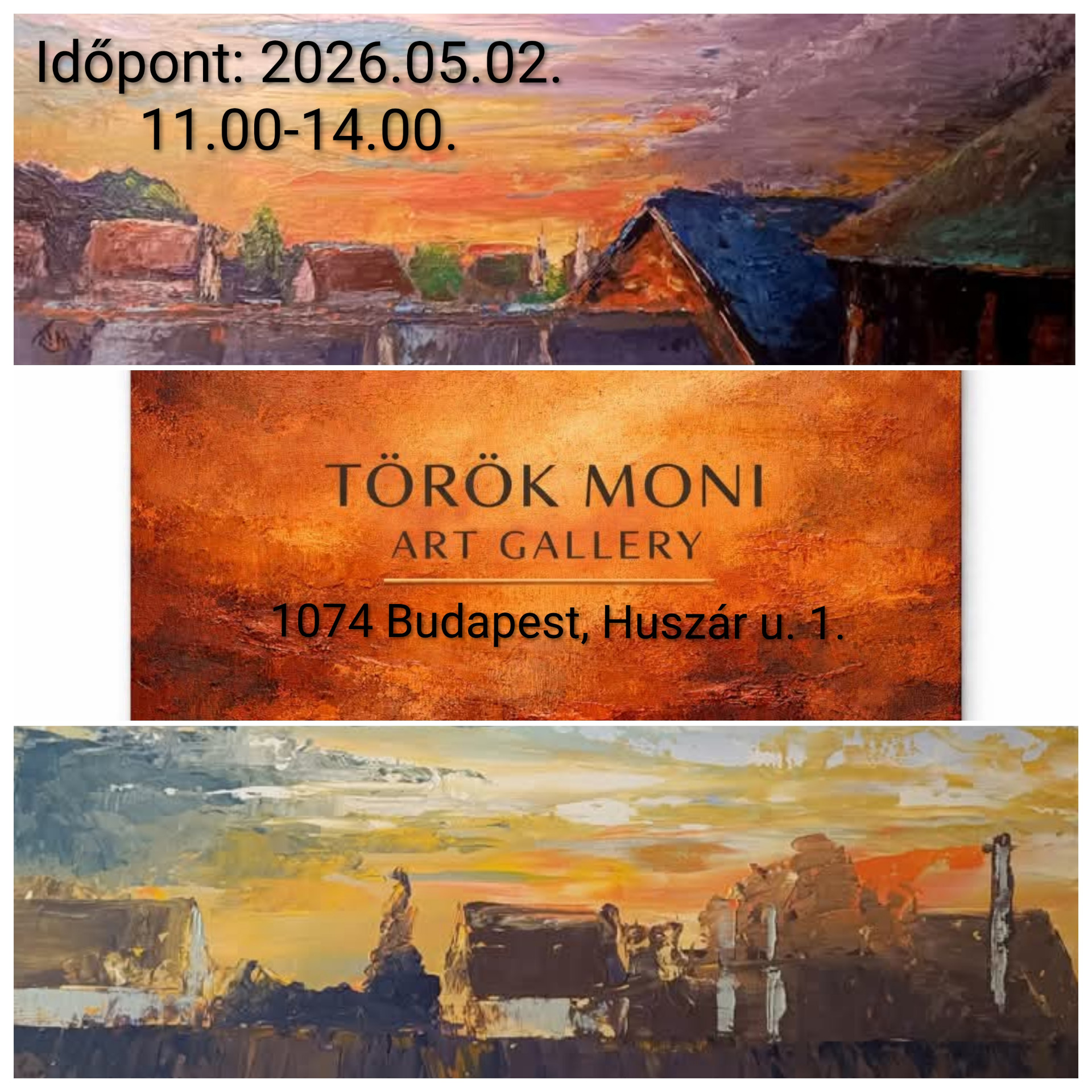 Előreláthatólag 3 képet fogunk megfesteni.Cím : Török Moni ART GALLERY 1074 Budapest, Huszár u. 1.